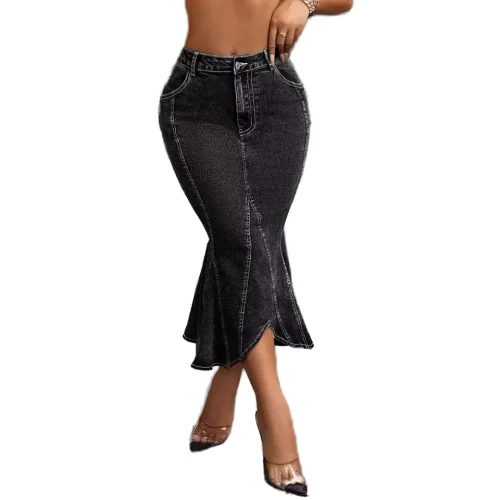Mermaid Denim Skirts Irregular Hem Elegant Sexy Tight Fishtail Washed for Spring Asymmetric Women’s Denim Skirts