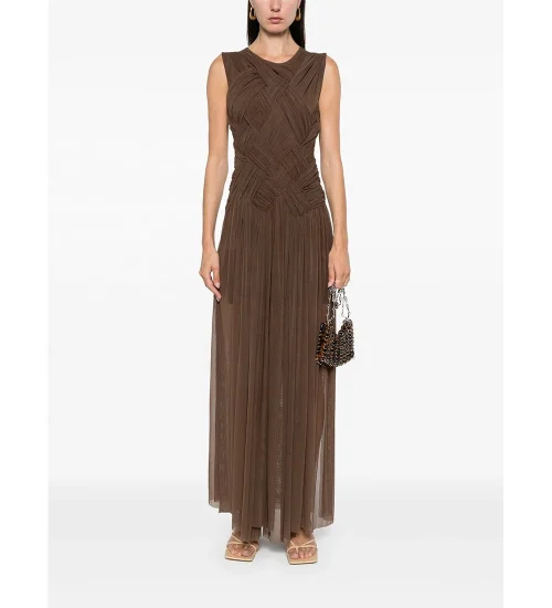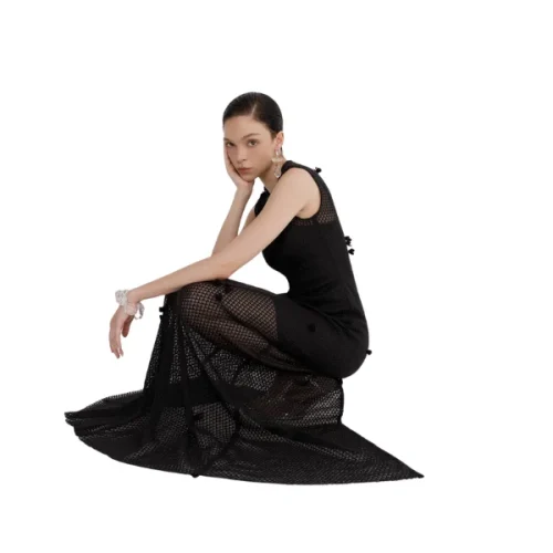 New Arrival Crew Neck Sleeveless Weave Mesh Casual Maxi Dress Women Dress