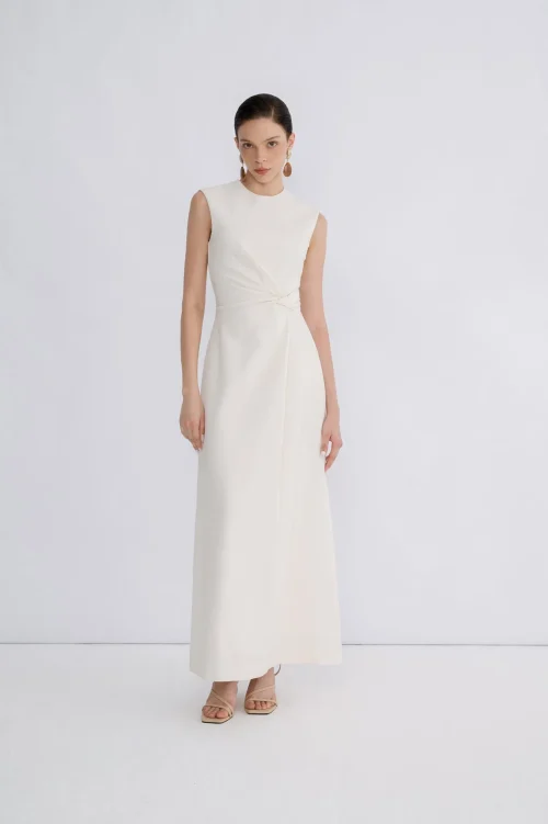 New Arrival Casual Womens Dresses Sleeveless Yuri Twist Midi Dress High-Quality Fabric Women’S Clothes Whiteant r