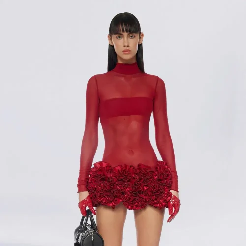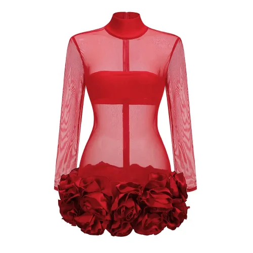 New Arrival Summer Florals Rose Mini Dress for Women Sexy Party Dress Natural Waistline Feather Decoration for Valentine’s Day