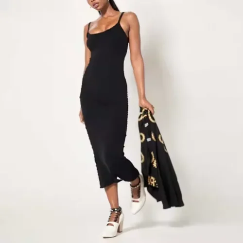 New Arrival Summer Dress Simple Casual Sexy Thin Strap Elastic Cotton Solid Color Maxi Bodycon Dress Women