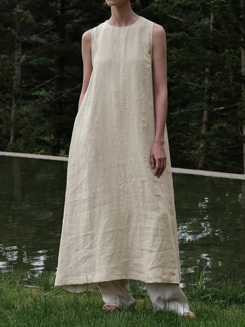 New Arrival Summer Plus Size Women Dress Comfortable Linen Ladies Sleeveless Loose Maxi Dress Long Swing Casual Dresses