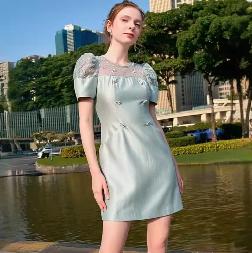 New Arrival Elegant & Sexy Summer A-Line Dress for Women Casual Fashion with Sweet Style Short Sleeve Mini & Natural Waistline