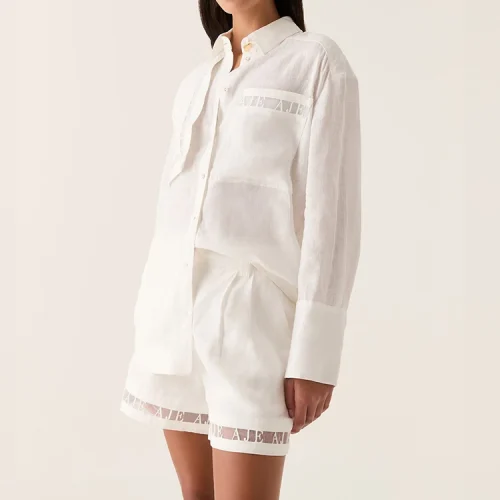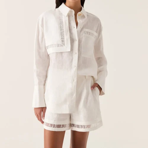 New Design Spring 100% Cotton and Linen Lapel Shirt Long Sleeve Girls Hemp Shirt Casual Clothing Linen