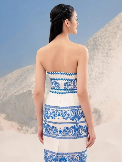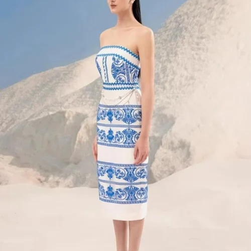 New Design Summer Print Letters Slim Blue and White Female Long Skirts for Women