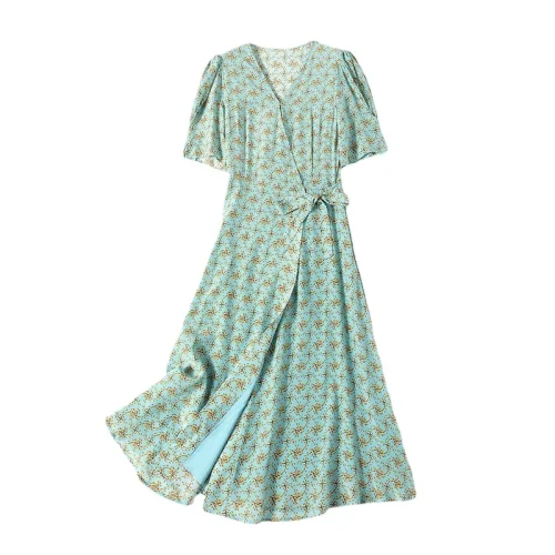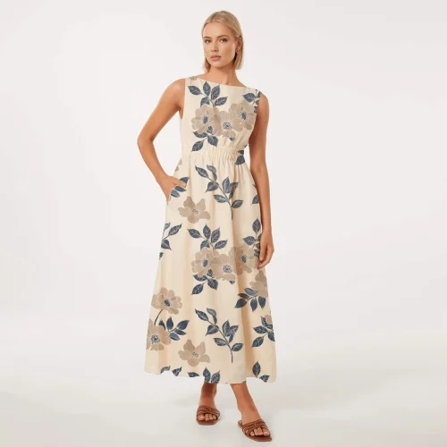 New Fashion Summer Linen Long Casual Dress Women Casual Bohemian Floral Dress for Women