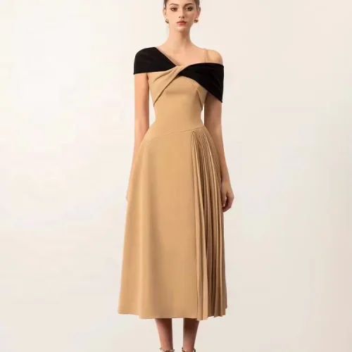 New Fashion Women Oblique Elegant Long Shoulder Knitted Pleated Dress Summer Womens Casual Dresses