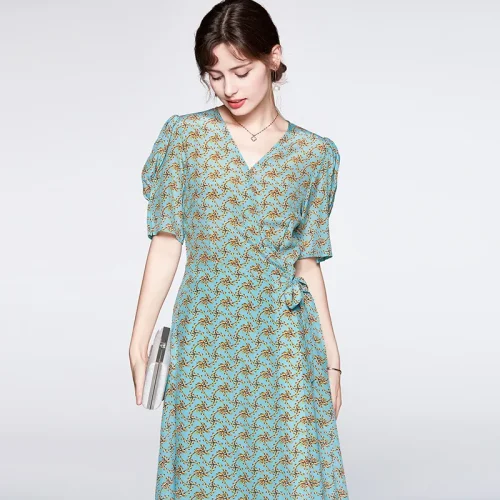 New Fashion Women With Self Floral Print Ruffle Hem Spring Casual Women’S Dress