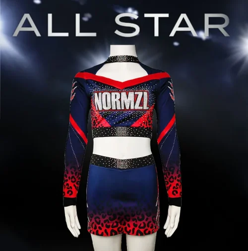 New Style Women Cheerleader Costumes Cheer Dance Team Long Sleeve Sparkle Rhinestones Cheerleading Uniforms