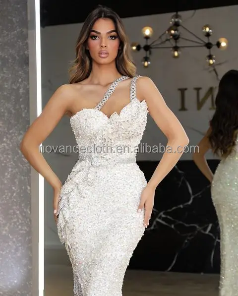 NOVANCE Newest Design Casual Fashion One Shoulder Long Sleeve Dress Sequin Long Club Dresses Women Elegant Dresses Women Lady