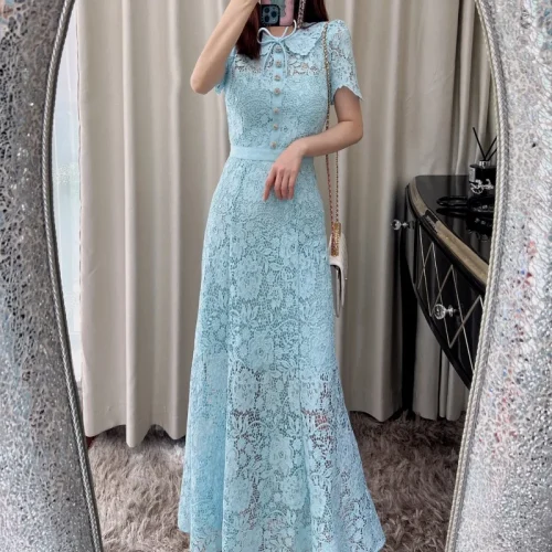 NOVANCE B2738 Girls Party Casual Dresses Women Ladies Pearl Collar Lace Sleeve Dresses Women Casual Summer Classy Women Clothing