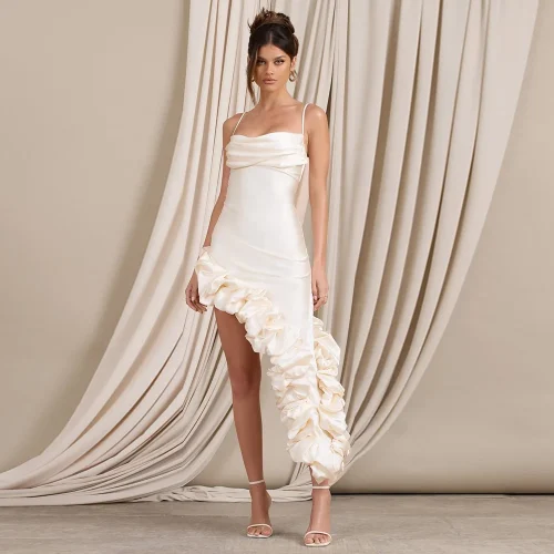 OUDINA Fashion Irregular Suspender Sleeveless Pleated Ruffled Women Casual Party Dresses Women’s Dress