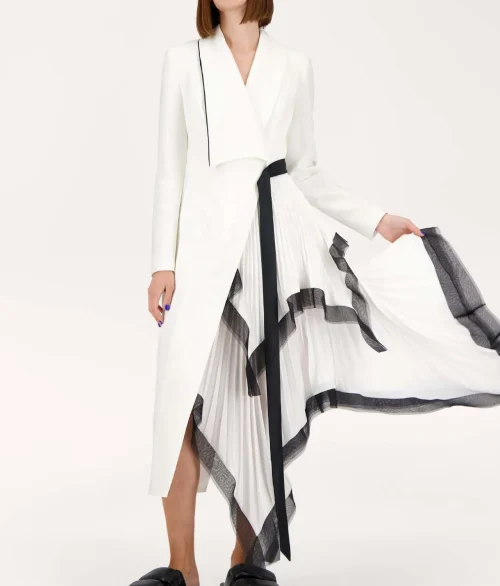 OUDINA Trendy Asymmetrical Pleated Loose Ruffle Contrast Color Long Dresses Women Elegant Dress Casual Women’s Dresses