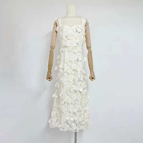 Temperamental Lady Style Dress Female 2025 Summer New Fashion Embroidery Butterfly Splicing Design Suspender Long Dress