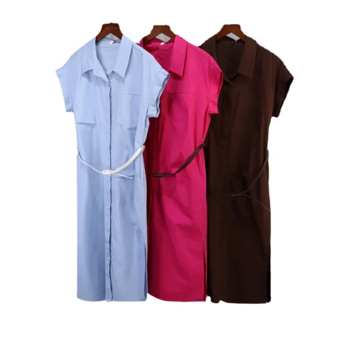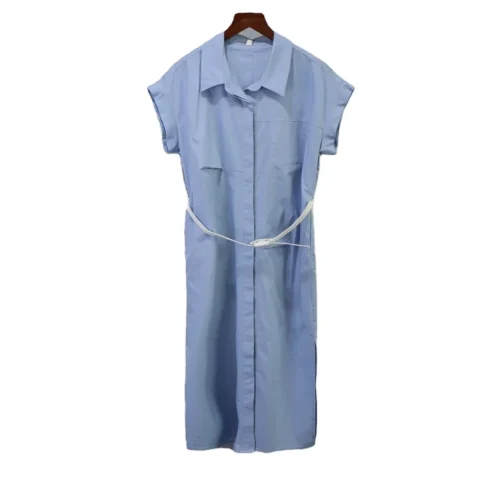 The 2025 Summer New Women’s Pure Cotton Lapel Buckle-belt Dress Is an Elegant Party Style Dress