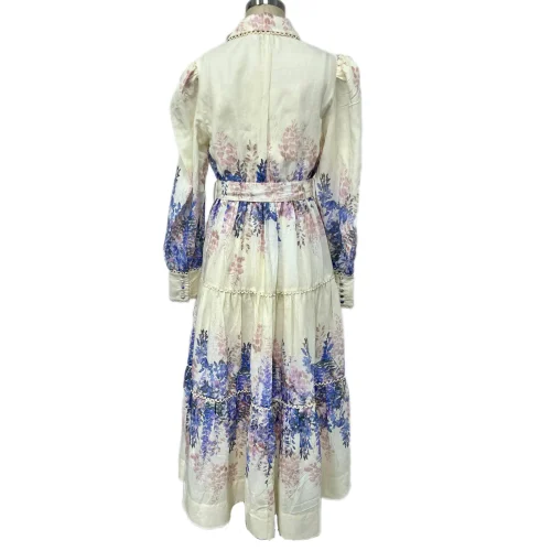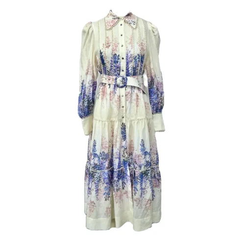 Vintage-inspired A-Line Dress Printed Lantern Long-Sleeved Waistline Elegant Full-Length Skirt Spring Autumn Casual
