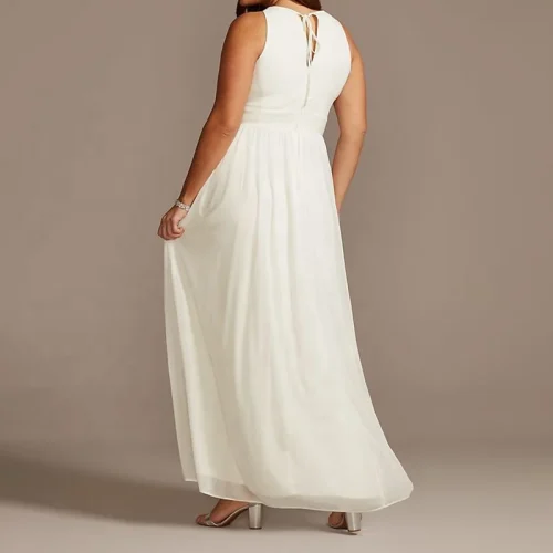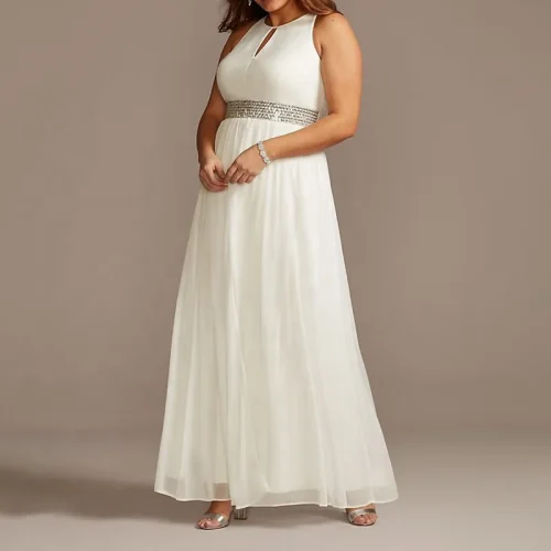 Weixin Jersey Keyhole Plus Size Gown With Crystal Waist