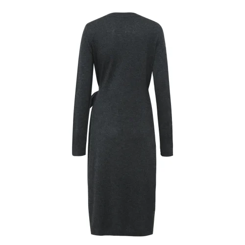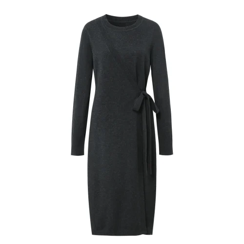 2024 Knitwear Manufacturers Spring Round Collar Wrap Lace up Midi Elegant Casual Dresses Women Fit Sweater Knit Dress