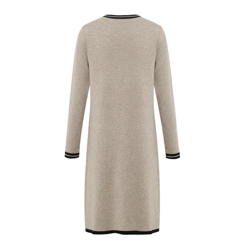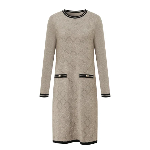 2024 Autumn New Temperament Camel Elegant Round Neck Fashion Women’s Dress Long Sleeve Knitted Simple Casual Dress