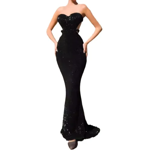 2024 New Sexy Fishtail Woman’s Evening Dress Solid Color Breast Wrap Party Dress