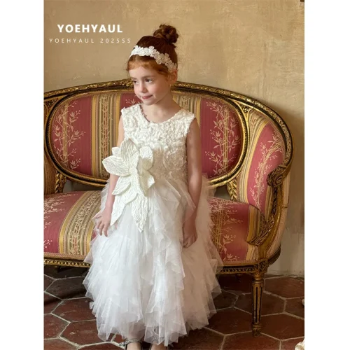 YOEHYAUL 25011 Cotton Lining White Princess Child Dress Sleeveless Frock Children’s Party Dress Toddler Flower Girls’ Dresses