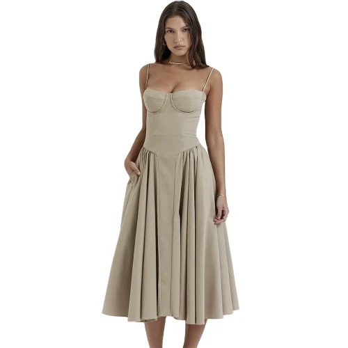 Fashion Sleeveless Midi Clothing Party Dress Ladies Girls Off Shoulder Casual Dresses