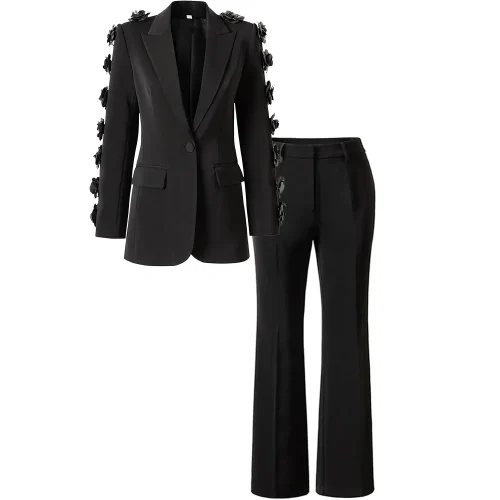 Fashionable High-end Suit Decoration Flower Set Women’s European and American Style Party Dress Long Pants Two-piece Set