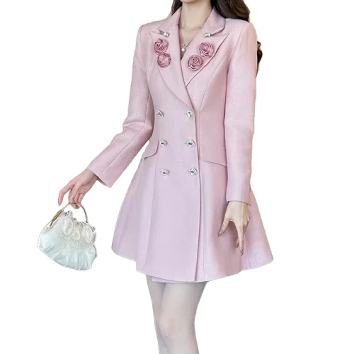 High Quality izable French Pink Satin Blazer for Women New Arrival Breathable Solid Pattern Woven Perfect Sundress