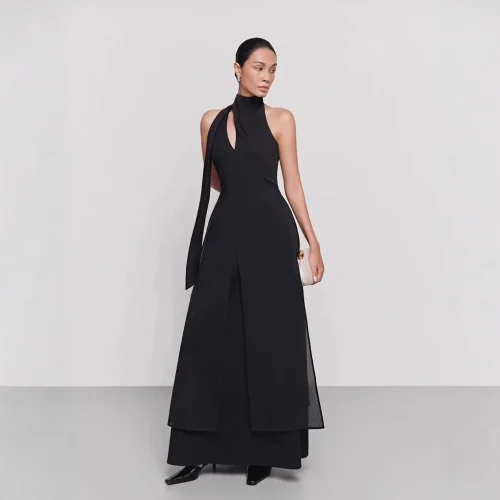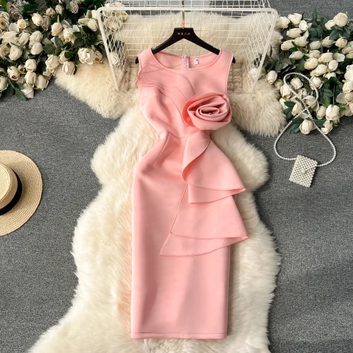 High Quality Elegant Sleeveless Evening Party Dress for Women Vintage Fashion Ladies Dress