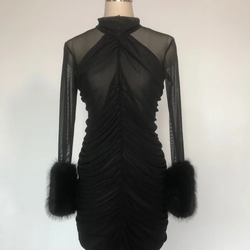 LS2600 New Spring Summer Long Sleeve Ruffle Dress Birthday Dresses Women Fashion Feather Dress
