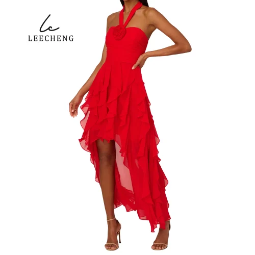 Red Elegance Women’s Long Skirt Ladies Sexy Backless Front Slit Casual Tiered Red Sling Midi Sundress Dresses