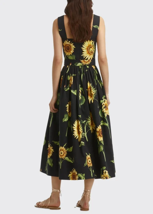 Quality Women Summer Sleeveless Sunflower Print Belted Maxi Long Dress Sundress