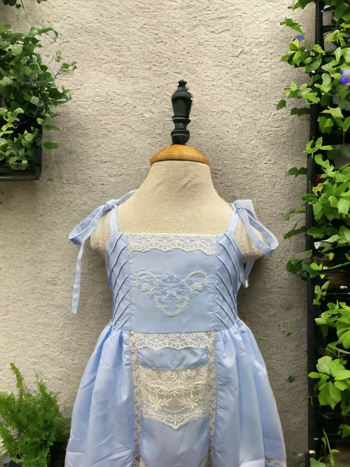 Ready Ship Cute Sleeveless Blue Dress 6-Year-Old Baby Girl Khate Fabric Machine Embroidery Lace Connect Mini Parties Included