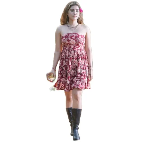 Red Floral Valentine’s Day Dress, Indian Hand Printed Cotton Summer Dress, Party Wear, Midi Dress, Off-Shoulder Dress