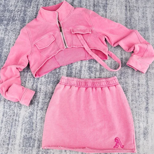 Women Summer Clothes Cropped Jackets Shorts for Women Acid Wash Cotton 2 Piece Shorts Set Female Clothing