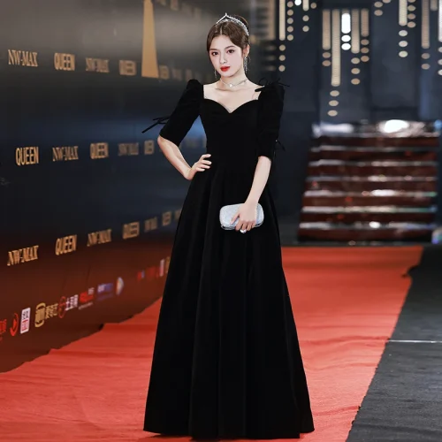 Women Vintage square Collar Long Dress New Elegant Solid Color 3/4 Sleeve Party Vestidos Casual Spring Autumn Dress