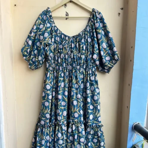 Women Wear Green neckline cotton Green Midi Casual Dress Cotton Long maxi Summer Puff Sleeve Dress with pocket Supply