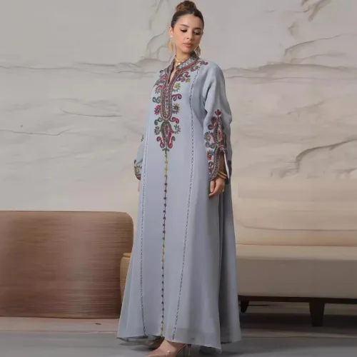 Women’s Cross-Border Casual Dress 4069 Middle East ‘s Heavy Industry Rope Embroidery Craft Abaya Robe Excellent
