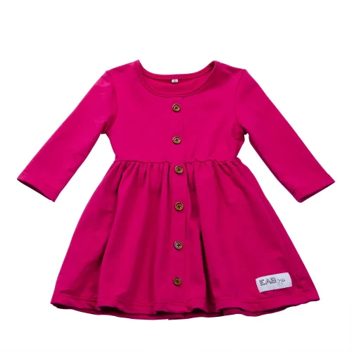 Wooden Button Down Midi Dress Casual Wear Solid Color Long Sleeves Knit Cotton Toddler Girls Twirl Dresses
