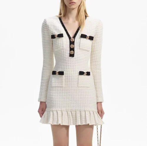 Dropshipping New Fashion Light Luxury Sequin Waffle Ruffled Knit Dress for Women