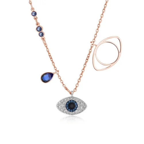 Women’s Blue Eye Necklace Bracelet Trendy Rose Gold Magic Eye Zircon Stone for Engagement Wedding Party-Direct Manufacturer Sale