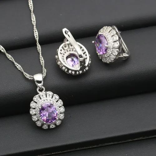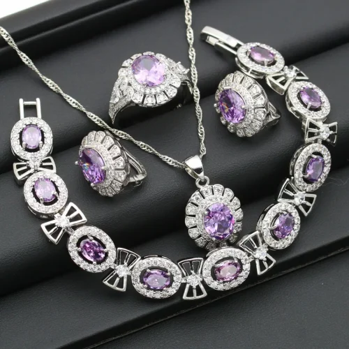 Women’s Classic Style Fashion Jewelry Set Zircon Bracelet Earrings Necklace Pendant Ring for Parties Engagements Wedding Gift