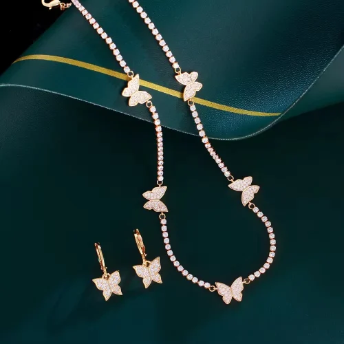 Women’s Fine Jewelry Set Copper Alloy Pendant Necklace Earring Gold Plated Vintage Diamond Charms Design