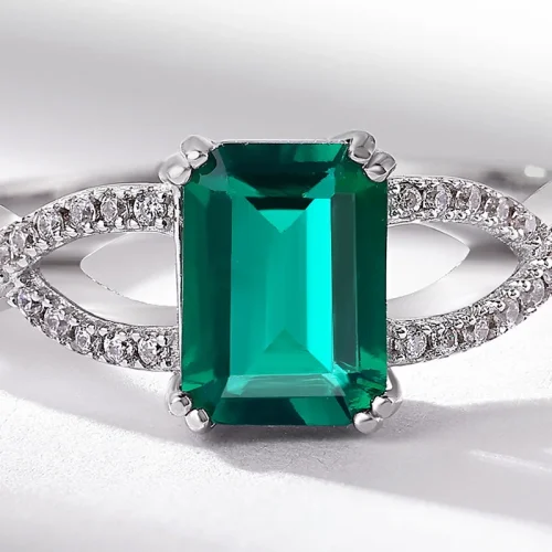 Women’s S925 Sterling Silver Retro Vintage Style Gemstone Twist Ring Colored Rectangular Emerald for Wedding Engagement