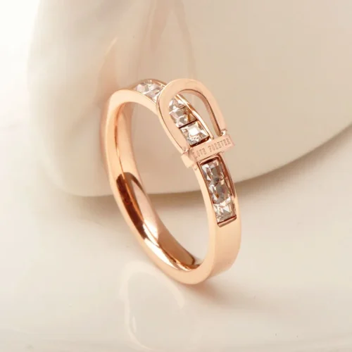Women’s Stainless Steel Fine Jewelry Rings Gold & Rose Gold Plated Cubic Zircon for Weddings & Engagements for Women & Girls