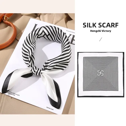 Women’s Small Square Silk Scarf for Spring Summer 53 Fashion Decorative Geometric Headscarf Bag Hair Belt Mulberry