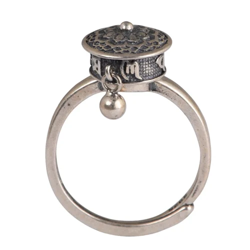 100% 925 Sterling Silver Women’s Ring Classic Buddhist Scripture Turning Cylinder Inlay Fashion Jewelry Plating Unique Anillos
