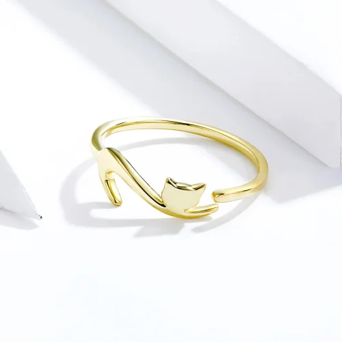 100% 925 Sterling Silver Sticky Cat with Long Tail Finger Ring Women Ring Adjustable Engagement Ring Jewelry