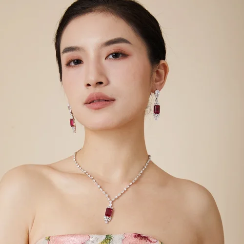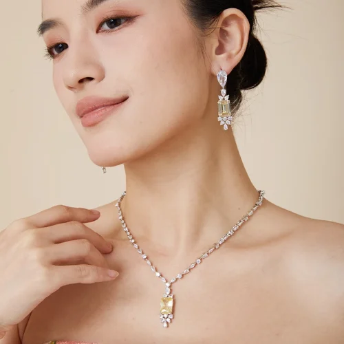 Women Wedding Jewellery Necklace Earring Ring Bracelet 4pcs Full Zircon Jewelry Set