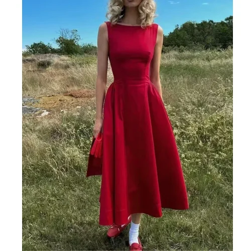 High Quality Elegant Sleeveless Evening Party Dress for Women Vintage Fashion Ladies Dress